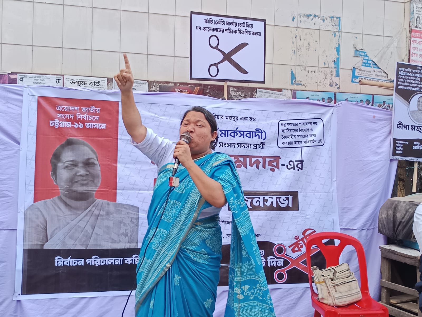 চট্টগ্রাম-১১ আসনে বাসদ (মার্কসবাদী) মনোনীত প্রার্থী দীপা মজুমদার-এর নির্বাচনী জনসভা অনুষ্ঠিত