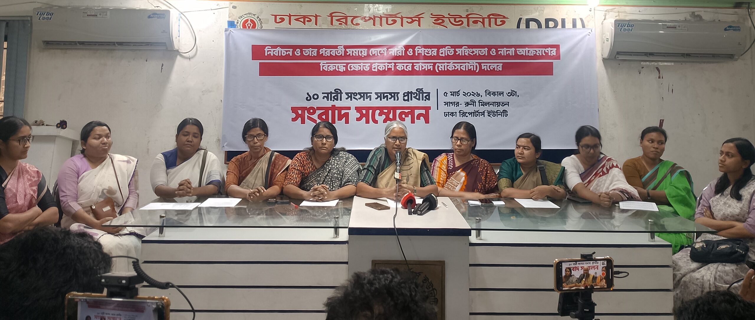 নারীর প্রতি সহিংসতা ও নানা আক্রমণের প্রতিবাদে বাসদ (মার্কসবাদী) দলের ১০ জন নারী প্রার্থীর সংবাদ সম্মেলন অনুষ্ঠিত