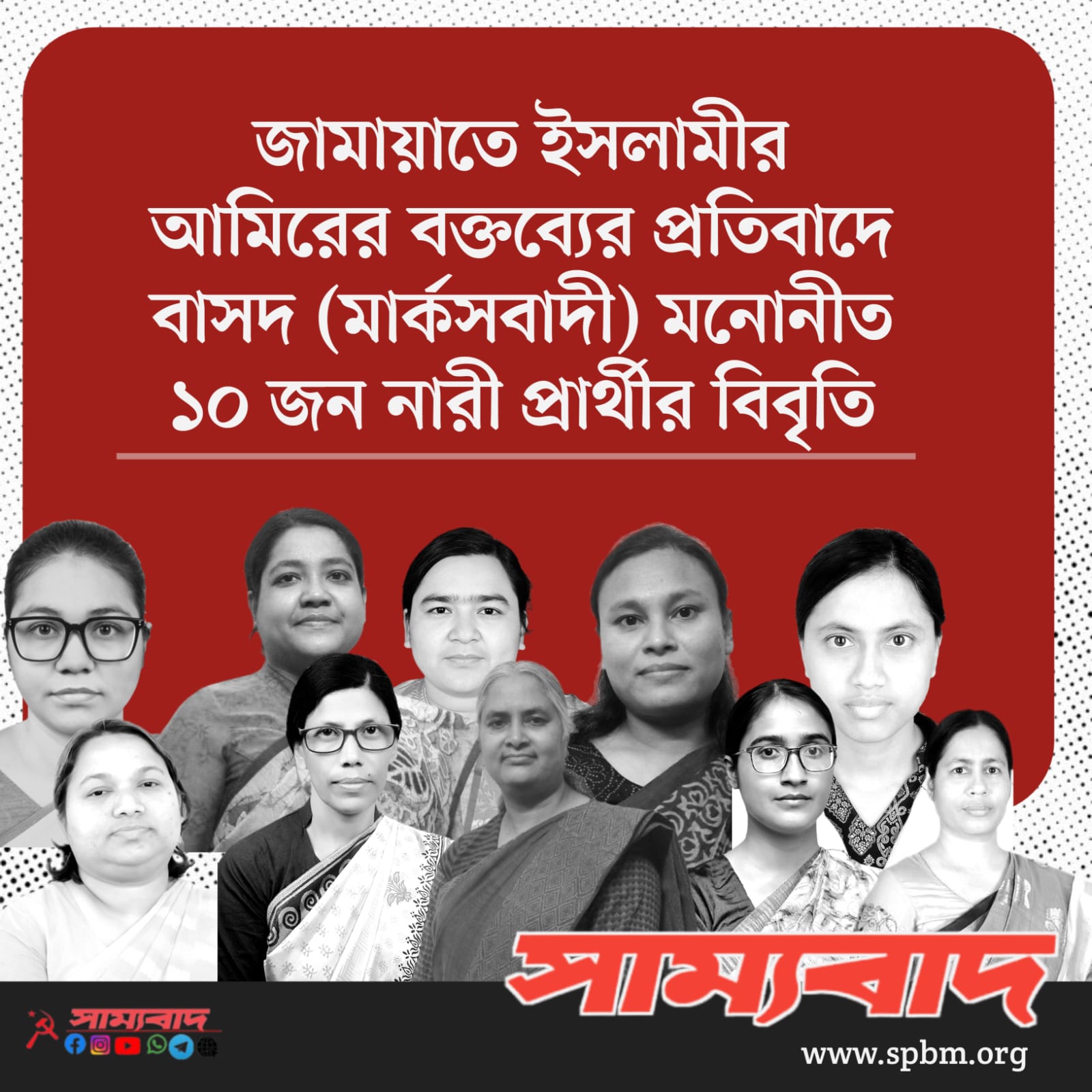 জামায়াতে ইসলামীর আমিরের বক্তব্যের প্রতিবাদে বাসদ (মার্কসবাদী) মনোনীত ১০ জন নারী প্রার্থীর বিবৃতি
